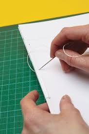 It stitches the book block together and an adhesive can be applied to secure it to the cover. Starting at the middle hole push the needle up through the back of your pages leaving a 10cm loose thread remaining. The knot should be on the side of the paper that faces up not the edge.