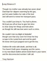 We never could talk much and now don t try. Tony harrison is deservedly known as the poet of a distinctive kind of post war experience. You re like book ends the pair of you she d say.