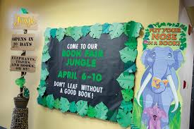 Schools go all out decorating their book fair each season. Feel the spirit of the jungle calling. Fun wall décor 3 place on doors walls or windows to.